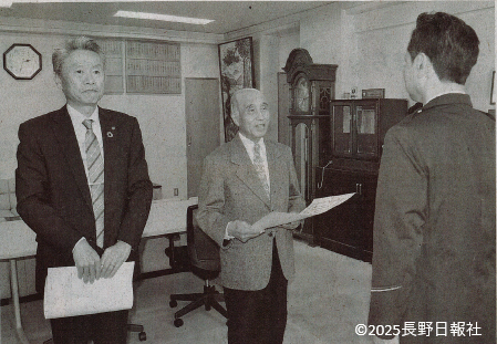 当社社員が、関東管区警察局長・関東安全運転管理者協議会連合会長の連名表彰で優良安全運転管理者として表彰され、11月27日に岡谷警察署長へ報告いたしました。